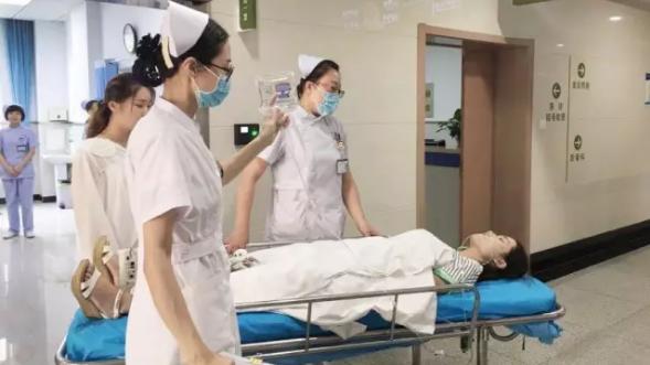在急诊科实习的本专科共五名同学也积极参与了查房,并在情景演练环节中主动承担了病人、病人家属及抢救室实习护士等多种角色,他们积极配合老师,圆满完成了对病人接诊、分诊、抢救、护送检查及转运护理的演练。
