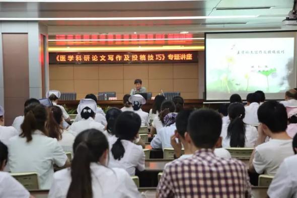 为调动我院科研人员撰写科研论文的积极性,提升我院科研创新层次,助推我院学科建设。8月11日下午,由科研处、教育处共同组织的《医学论文写作及投稿技巧》专题讲座在1号楼12楼大会议室举办,本次讲座邀请了蚌埠医学院学报编辑部主任姚仁斌教授来院授课。讲座由何学明副院长主持,全院研究生及以上学历人员、硕士生导师、医学重点人才及临床医护骨干,部分住院医师参加了此次讲座。