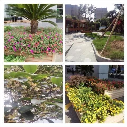 看着开满金色的桂花树,我想起了那些顶着烈日穿梭于草丛中的蓝色身影,如果没有他们的辛勤劳作、精心修剪,哪有眼前此景?冬青、月季、草坪、树苗……无不经过绿化人员细致地浇灌培育,植树、栽花、浇水、施肥、修枝、建绿篱、除虫害……无不倾注着他们的心血和汗水。