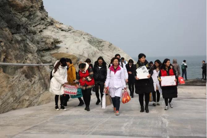 早上六点,天蒙蒙亮,医护人员们在连岛码头集结,乘坐轮船经过3个小时的海上航行,医护人员终于抵达达念山岛,这个岛上只有4名驻岛官兵,交通不便,物资匮乏,条件艰苦。