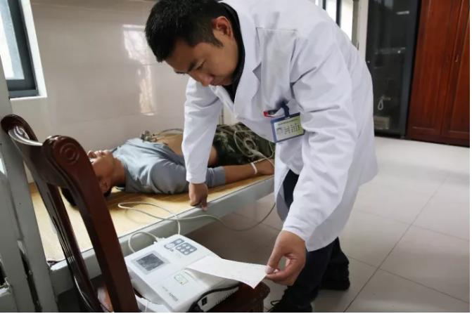 医护人员先后给官兵们测量血压、查血糖、做心电检查以及内外科听诊。