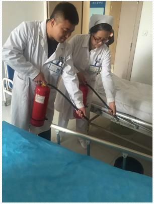 演练中,参加消防应急预案演练的医务人员都能熟练地掌握灭火器材的操作要领,并遵循“高层先撤、患者先撤、重患者和老人先撤、医务人员最后撤”的原则,顺利的完成了演练活动。
