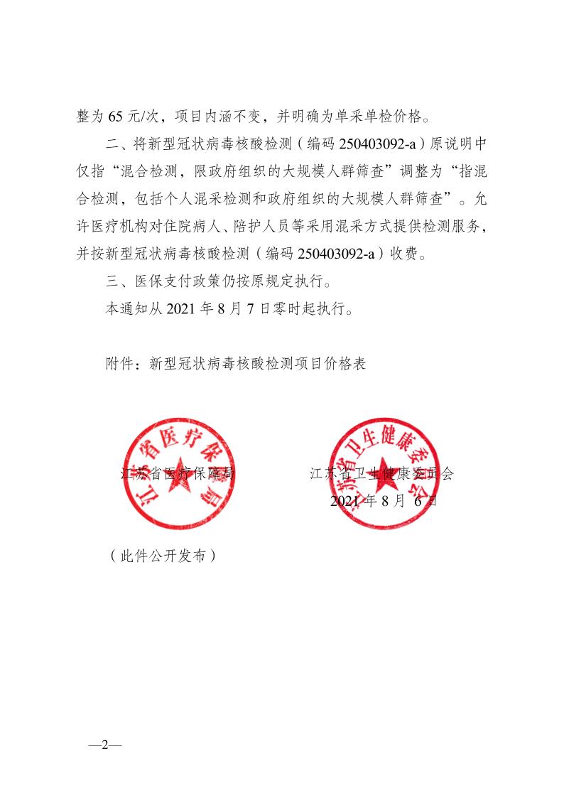 关于降低新型冠状病毒核酸检测等项目价格的通知