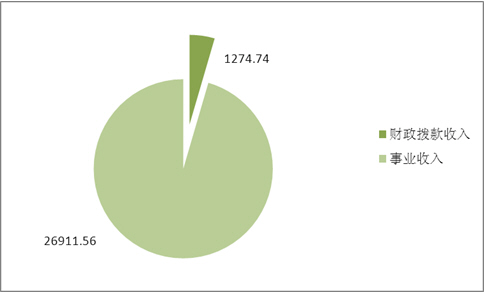 医院本年收入合计28,186.30万元,其中:财政拨款收入1274.74万元,占4.52%;事业收入26911.56万元,占95.48%。