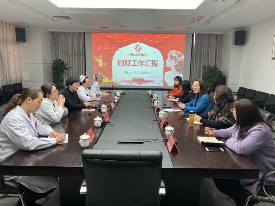 蒋主席代表院妇联对市卫生健康行业妇联来院指导工作表示感谢,表示今后要把思想和行动统一到市卫健委和院党委、上级妇联的各项决策部署上来, 牢固践行初心和使命,提升干事创业的能力,用真心和真情为广大妇女群众服务,为创建三级甲等医院贡献巾帼力量。