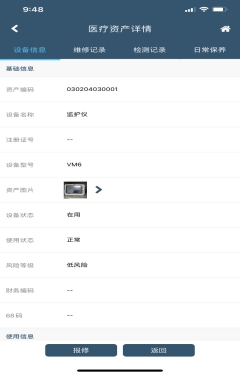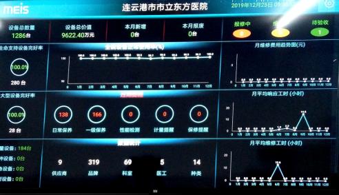 为了规范医疗设备管理,我院引进医疗设备可视化管理软件,通过可视化软件监管各临床科室医疗设备的使用情况、日常维修保养、计量检测等医疗设备相关信息,保障医疗设备时刻处于完好待用状态。临床科室设备使用人员通过手机扫码发送报修申请,报修信息通过电脑、大屏幕、手机三方报警显示,提醒设备处工程师维修,并显示所有在修设备,解决了传统电话报修无记录、易忘记、易耽误问题。同时可按科室分析统计设备的故障发生频率,设备处对故障率较高的设备加大维护和保养力度,对医疗设备的潜在风险和安全隐患进行有效控制和预防,确保医疗设备的临床应用的安全有效。