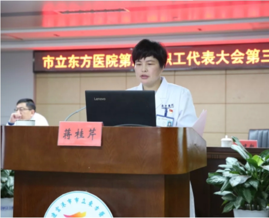 工会主席、总会计师蒋桂芹在会上作了2019年工会工作报告,并提出2020年工会工作计划。2019年工会圆满完成了各项目标任务。蒋主席说:“2020年是我院完成“十三五”规划目标,积极推动公立医院改革,加强我院省市重点专科创建,努力冲刺三级甲等综合医院的扬鞭奋进之年,新形势、新任务,预示着工会工作面临新的机遇和挑战,让我们在上级工会和院党委的领导下,围绕中心、服务大局、同心共济,为促进市立东方医院和谐健康持续发展作出新的更大的贡献!”