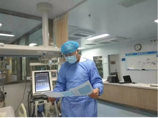 夜里10点钟接到医院的紧急通知,服从医院的安排和需要,吴医生再次回到ICU投入到抗疫第一线。