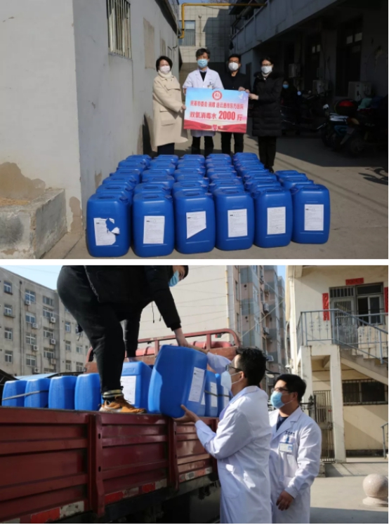 民革市委会捐赠双氧消毒水2000斤,农夫山泉有限公司捐赠农夫山泉矿泉水1400瓶。院党委书记杨红波对民革市委会及农夫山泉有限公司在非常时期对我院的爱心捐赠和大力支持表示由衷的感谢。