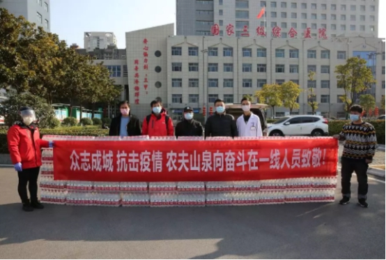 众志成城,抗击疫情,农夫山泉有限公司捐赠矿泉水1400瓶。▽
