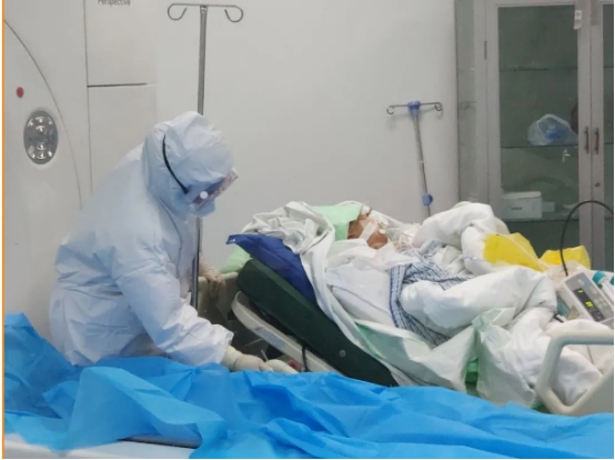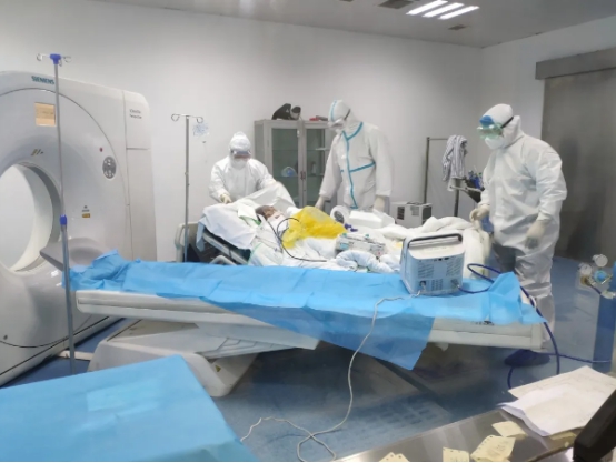 在疫情防控的关键时期,院领导和科主任第一时间布置疫情防控工作任务,为了避免交叉感染,确定住院部CT机为发热门诊患者专用,并安排24小时专人值班。技术组张洪伟、王文通和杨庆春三位同志勇担重任,毫不畏惧;面对防护资源的紧缺,为了不浪费有限的物资,他们经常连续数小时不吃不喝避免上洗手间。同时张名忠、韩向前和黄克勇三位主任24小时坚守在一线,并在第一时间作出影像诊断结果,为临床提供第一手资料,用实际行动诠释了“责任重于泰山“的责任与担当。