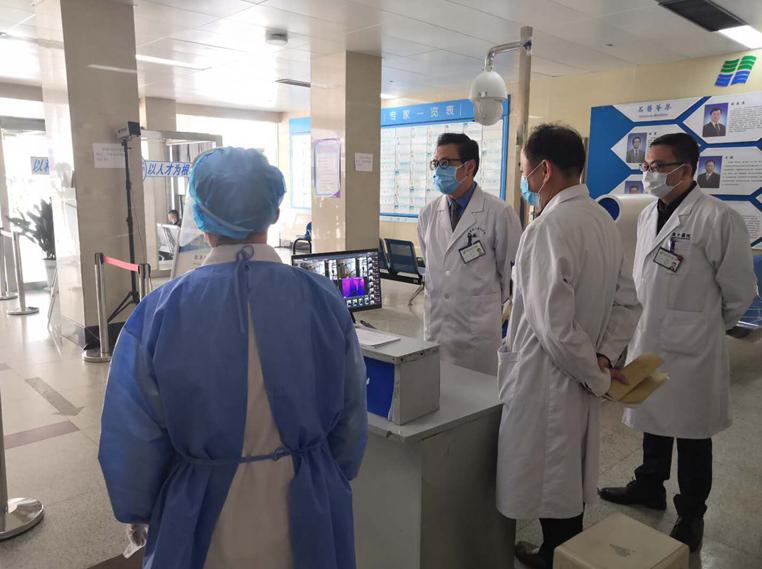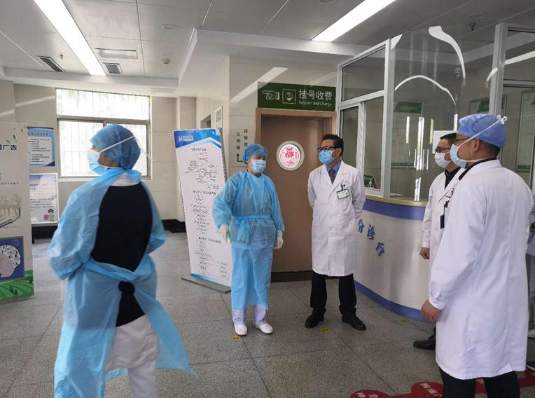 谈笑院长一行首先来到急诊科,详细询问了患者目前入院的分诊及收住流程、患者流行病学史填写情况、急诊医生人身安全等问题。在查看完急诊科现场后,谈院长强调急诊工作是医院的门面,医院各项制度的执行、医护人员的安全、各部门协调保障等多方面工作都要落实到位。同时,谈院长就新整合后科室的管理上进行了职责的划分。
