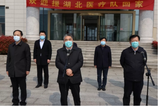 在这个光荣的团体中,你们每个人都展现了感人的故事,每天都在做出无私奉献。有的火线入党,用奉献书写了对党的无限忠诚;有的义无反顾,用毅然决然告诉人们这就是越是艰险越向前的精神境界。在这里,我代表院党委向你们表示最热烈的欢迎、最崇高的敬意和最亲切的慰问,同时也向大力支持你们的家人表示最真挚的感谢。希望回家的你们接下来一段时间好好休息,调理身心,希望你们在未来的工作中,保持荣誉,再立新功。