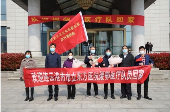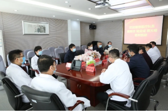 市立东方医院院长谈笑,党委书记杨红波,党委副书记、副院长耿玉强,副院长马建新,纪委书记胡海雁,副院长何学明,副院长王波,工会主席、总会计师蒋桂芹,医务处处长王斌为援湖北的3名医务人员举行了欢迎归队仪式。