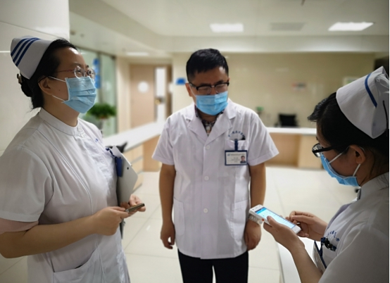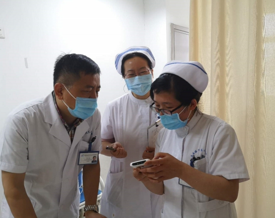 分管院长耿玉强现场查阅十二病区护理敏感指标、护士长手册等台账资料,深入病房现场查看移动护理的开展情况,现场访谈骨科主任韩成相和护士长宋小方,指导临床护理工作的开展。