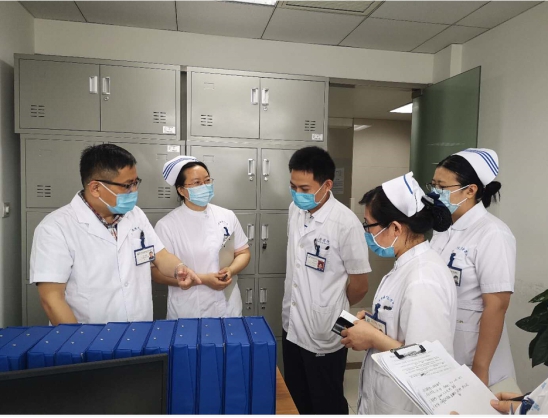 本次模拟评审活动由党委副书记、副院长耿玉强带队,参加人员有护理部主任张海云、护理部副主任金子媛及大科护士长,他们按照评审路径,采用正式评审的方式方法,采取资料查阅、现场查看、现场考核、人员访谈等方式对科室进行全面的检阅。