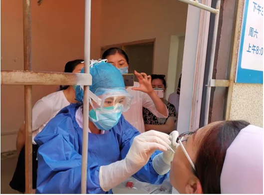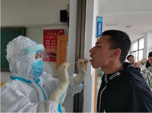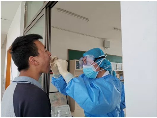 7月5日下午2点,工作人员开始对学校15名护送学生回疆的老师和351名新疆学生进行采样。