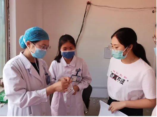为避免学生来回奔波,由校医与我院护士共同合作采样,我院临床综合实验中心负责检测。为保证核酸样本采集的安全与高质,我院核酸采集点工作人员与实验中心检验人员在我院采集点对连云港高级中学2名校医开展培训。培训内容主要有防护用品的穿与脱、正确采样方法、样本的存储等。
