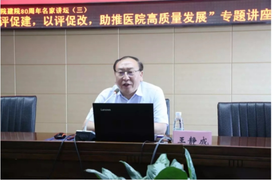 当日下午,王静成教授在第一会议室举办了“以评促建,以评促改,助推医院高质量发展”的专题讲座,院领导班子及全院中层干部、迎评联络员等200余人参会,会场座无虚席。