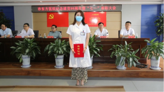 优秀共产党员代表、普外科护士李玉鸽,优秀党务工作者代表、监察室主任徐攀,先进基层党组织代表、门诊一支部书记王新颜分别作表态发言。