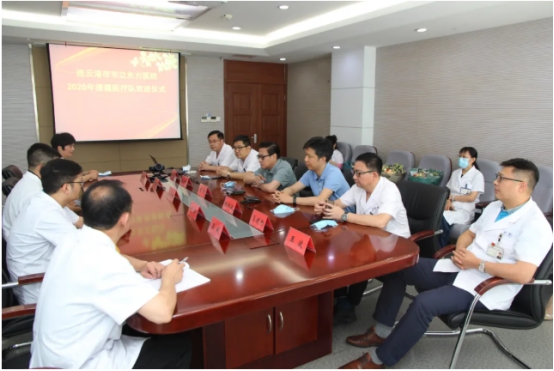 7月6日上午,我院举行仪式,欢送援疆医疗队前往霍尔果斯开展医疗援助工作。院领导班子、援疆医疗队队员、部分职能科室负责人参加仪式,院长谈笑出席仪式并讲话。