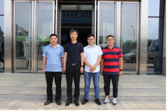 市立东方医院党委书记杨红波(左二)与援疆医疗队队员仲翔宇(右一)、金亮培(左一)、付轩(左三)合影