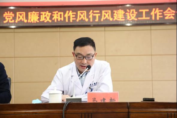 最后院长马建新要求,各支部、各科室要落实从严治党要求,压实管党治党责任,严格作风行风建设,要立足新发展阶段,贯彻新发展理念,构建新发展格局,统筹做好疫情防控和医疗工作,牢守底线、聚焦重点,补足短板,不断满足人民群众对看病就医的新需求。广大党员干部要切实增强责任感、使命感、紧迫感,找准党建工作与医院中心工作的结合点、创新点,促进党建工作与业务工作同提升、同发展。