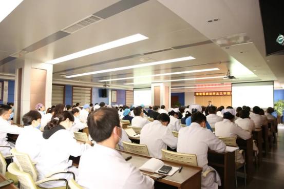 院长马建新主持会议,全院所有临床、医技科室的主任、副主任、科秘书、学科骨干共180余人聆听了讲座。