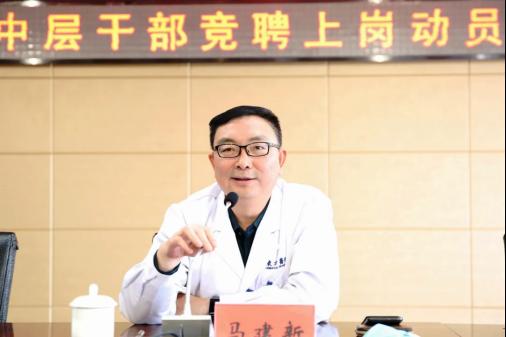 为深化公立医院人事制度改革,强化现代医院管理,努力建设一支高素质的干部队伍,4月19日,我院在12楼第一会议室召开2021年中层干部竞聘上岗动员会,院领导杨红波、马建新、胡海雁、何学明出席会议,全院中层干部参加了会议。会议由院党委副书记、院长马建新主持。