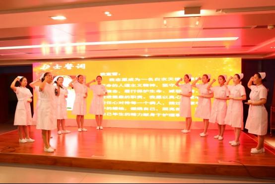“我宣誓:我志愿成为一名白衣天使,奉行革命的人道主义精神,坚守救死扶伤的信念,履行保护生命、减轻痛苦、促进健康的职责。我愿以真心、爱心、责任心对待每一个病人,接过先辈手中的蜡烛,燃烧自己,照亮他们,将自己毕生的精力献身于护理事业”,大会在聆听护士誓词中拉开帷幕。