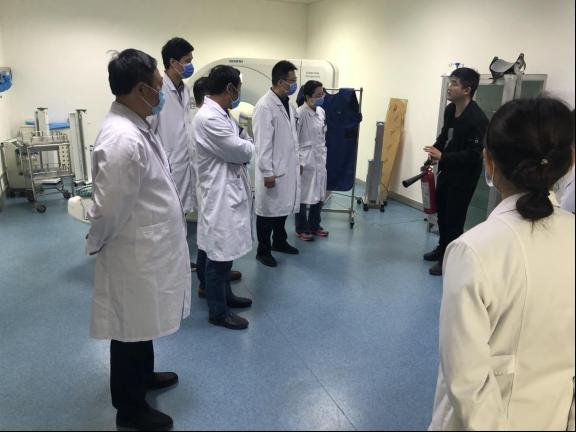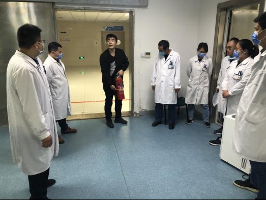 应急演练现场依据放射科机房、操作间、报告室及患者候诊大厅等环境的特点,模拟火灾发生时应急救援处置, 消防指导员从火灾案例、火灾起因分析、火灾预防、消防安全知识等四个方面作了详细讲解,并实战培训了120急救、119消防报警流程。