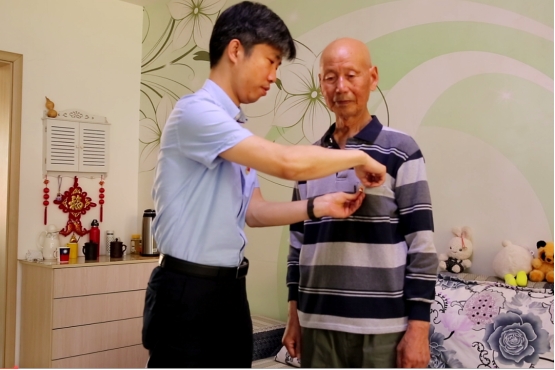 △党委书记杨红波为离休干部佩戴党徽