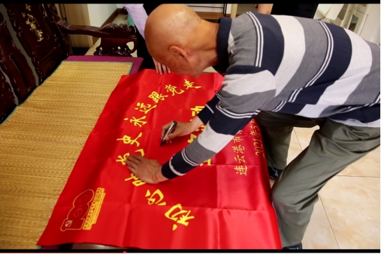△离休干部在“初心映党史,永远跟党走”红旗上签名