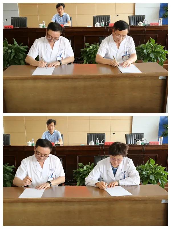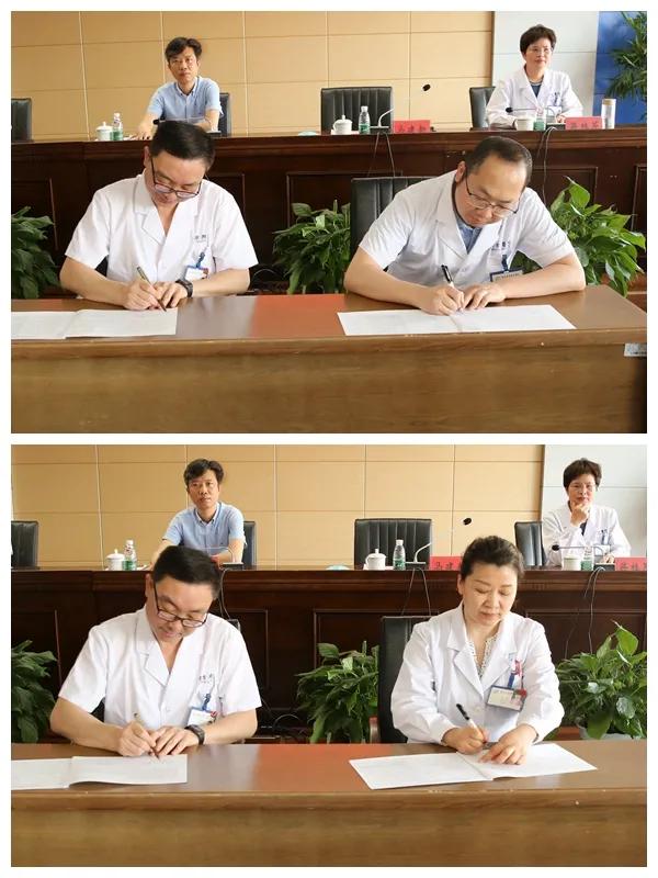 院党委副书记、院长马建新与中层干部代表签订《2021年中层干部综合目标管理责任书》