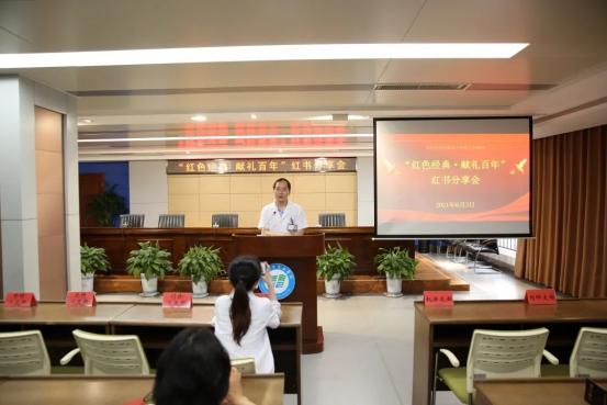 为庆祝建党100周年,引导全院党员同志学史明理、学史增信、学史崇德、学史力行,做到学党史、悟思想、办实事、开新局,营造积极的红色读书氛围,以精神饱满的状态迎接党的百年华诞。6月3日下午,由宣传统战处、党委办公室牵头举办了“红色经典、献礼百年”红书分享会,各支部党员代表及积极分子参加活动,会议由党办主任徐攀主持。