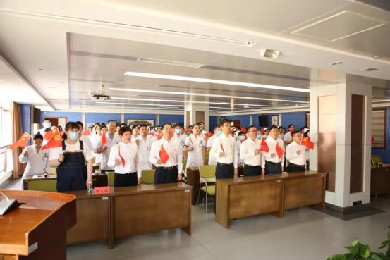 会议最后,大家挥动手中的党旗、国旗,怀着对党的无限忠诚,深情合唱《没有共产党就没有新中国》,歌颂党的百年光辉历程和伟大成就,庆祝中国共产党成立100周年!