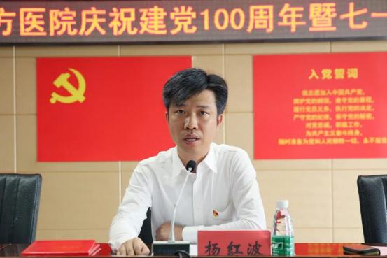 院党委书记杨红波以“从党史中汲取奋进力量 以党建引领医院高质量发展”为主题作了大会发言,回顾了百年来,我们党带领全国人民不畏艰难险阻创造的辉煌业绩,总结了一年来我院党建工作取得的成效。杨书记要求,全院党员干部要认真学习习近平总书记在庆祝中国共产党成立100周年大会上的重要讲话精神,坚定理想信念,牢记初心使命;要深化党史学习教育,明理增信,崇德力行,从党史中汲取奋进力量;推动党建与业务工作深度融合,互促互进,以高质量党建引领医院高质量发展;要凝聚人心,汇聚力量,全面推动各项工作任务顺利完成;要履职尽责,担当作为,争当推动医院高质量发展的表率。全体党员干部要增强“四个意识”,坚定“四个自信”,做到“两个维护”,把党中央决策部署落到实处,凝心聚力、砥砺前行,为开创医院各项工作新局面作出新贡献,以优异的成绩庆祝建党100周年!
