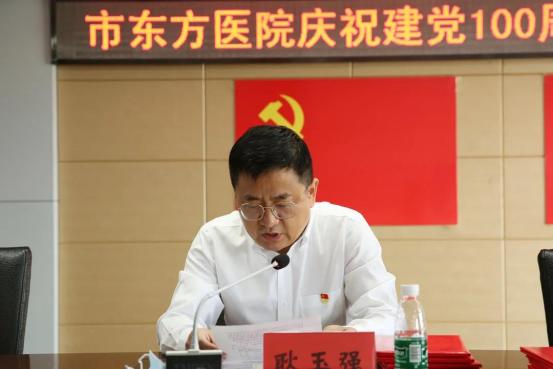 为庆祝中国共产党百年华诞,今天下午,市东方医院召开庆祝建党100周年暨七一表彰大会。院党委书记杨红波,党委副书记、院长马建新,党委副书记、副院长耿玉强,纪委书记胡海雁,副院长何学明,工会主席、妇联主席、总会计师蒋桂芹与全院中层干部、党员、积极分子参加会议,党委副书记、院长马建新主持会议。市卫健委党史学习教育第二巡回指导组到会指导。